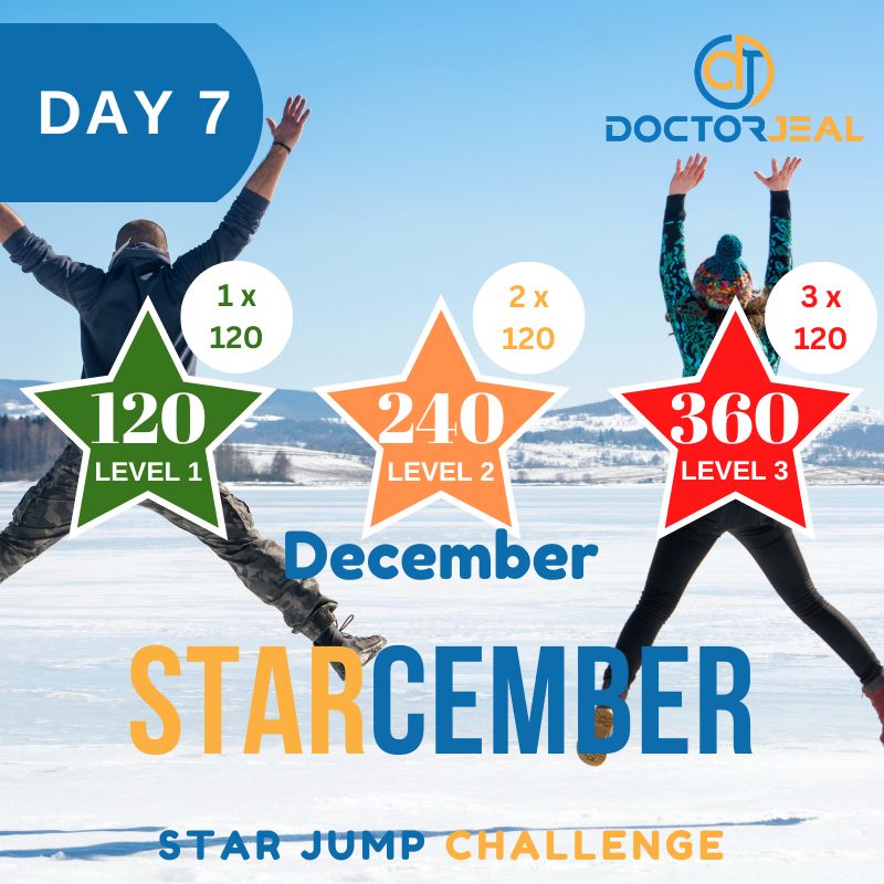 Day 7 of #Starcember Star Jump Challenge, here are your heart-pumping moves targets: 120, 240 or 360. Everyone is busy, so it won’t take you long to pump these out before you get on with your day.